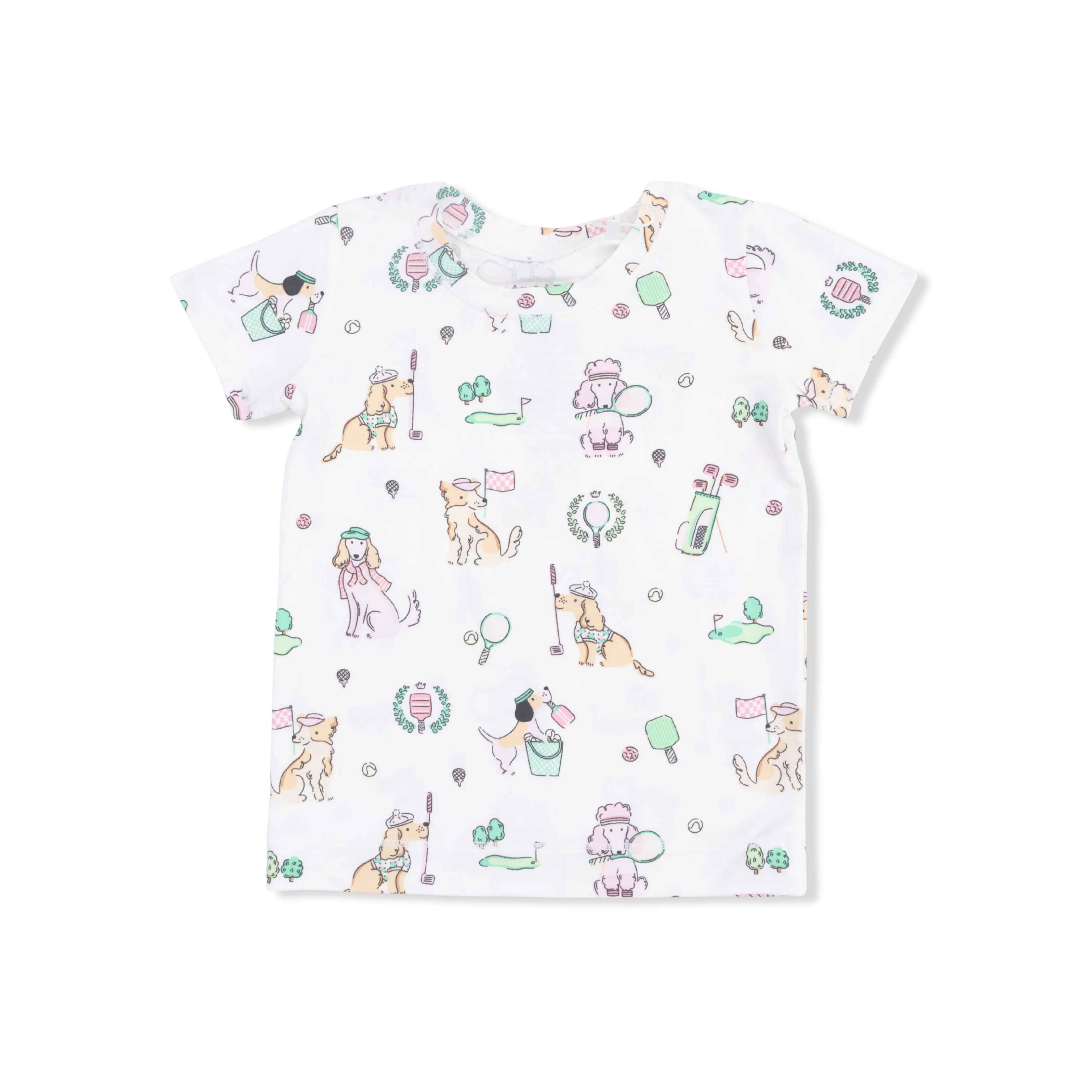 Short Sleeve Loungewear Set, Country Club Dogs, Pink