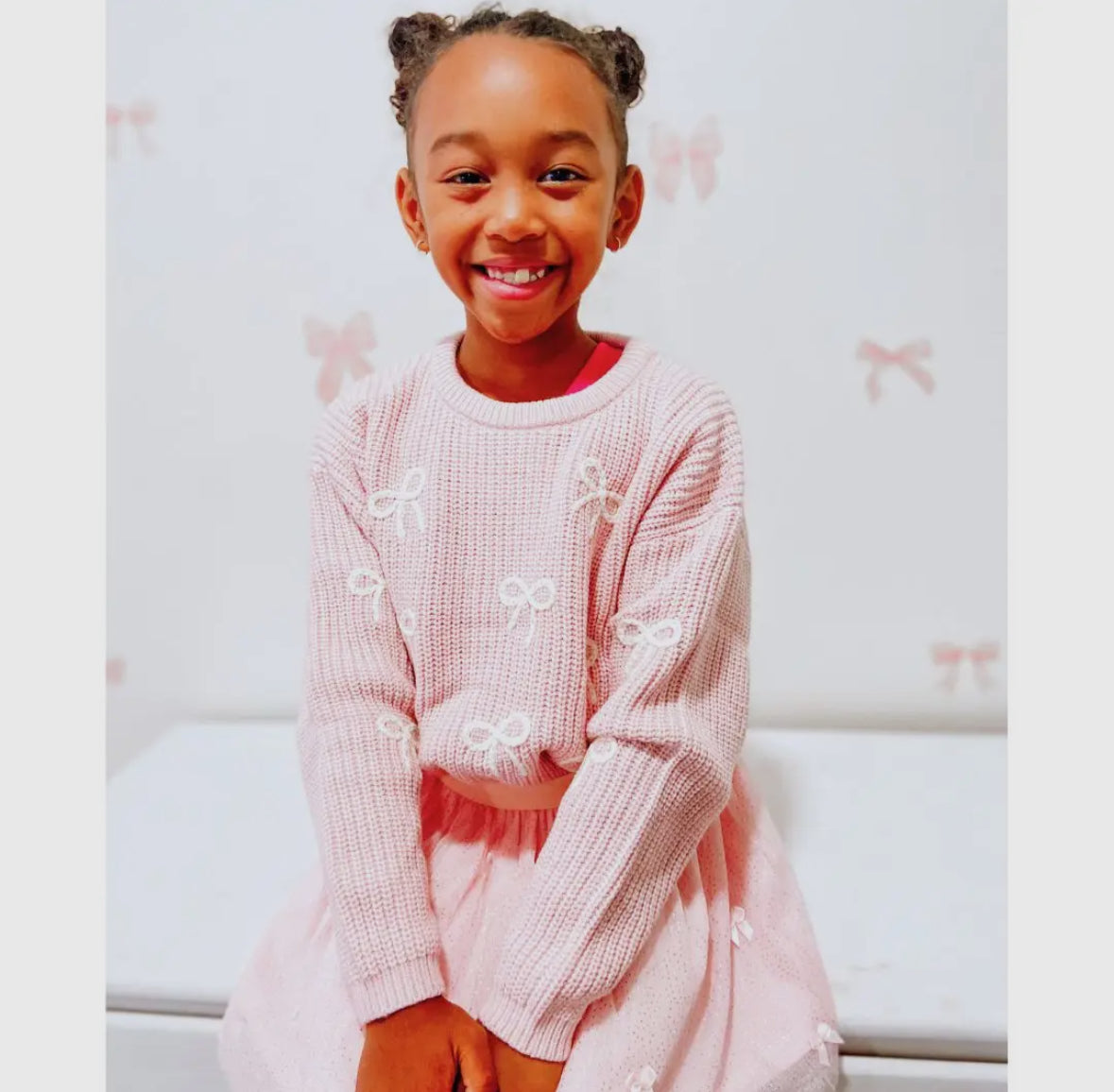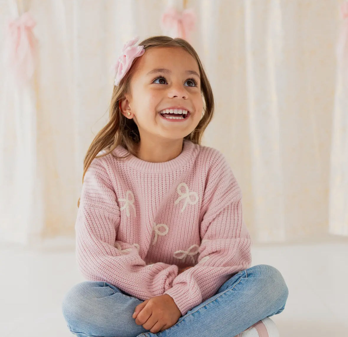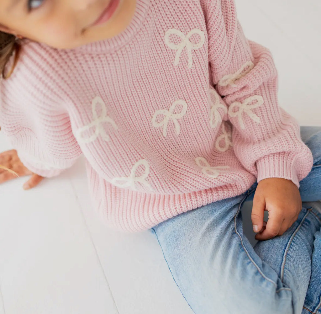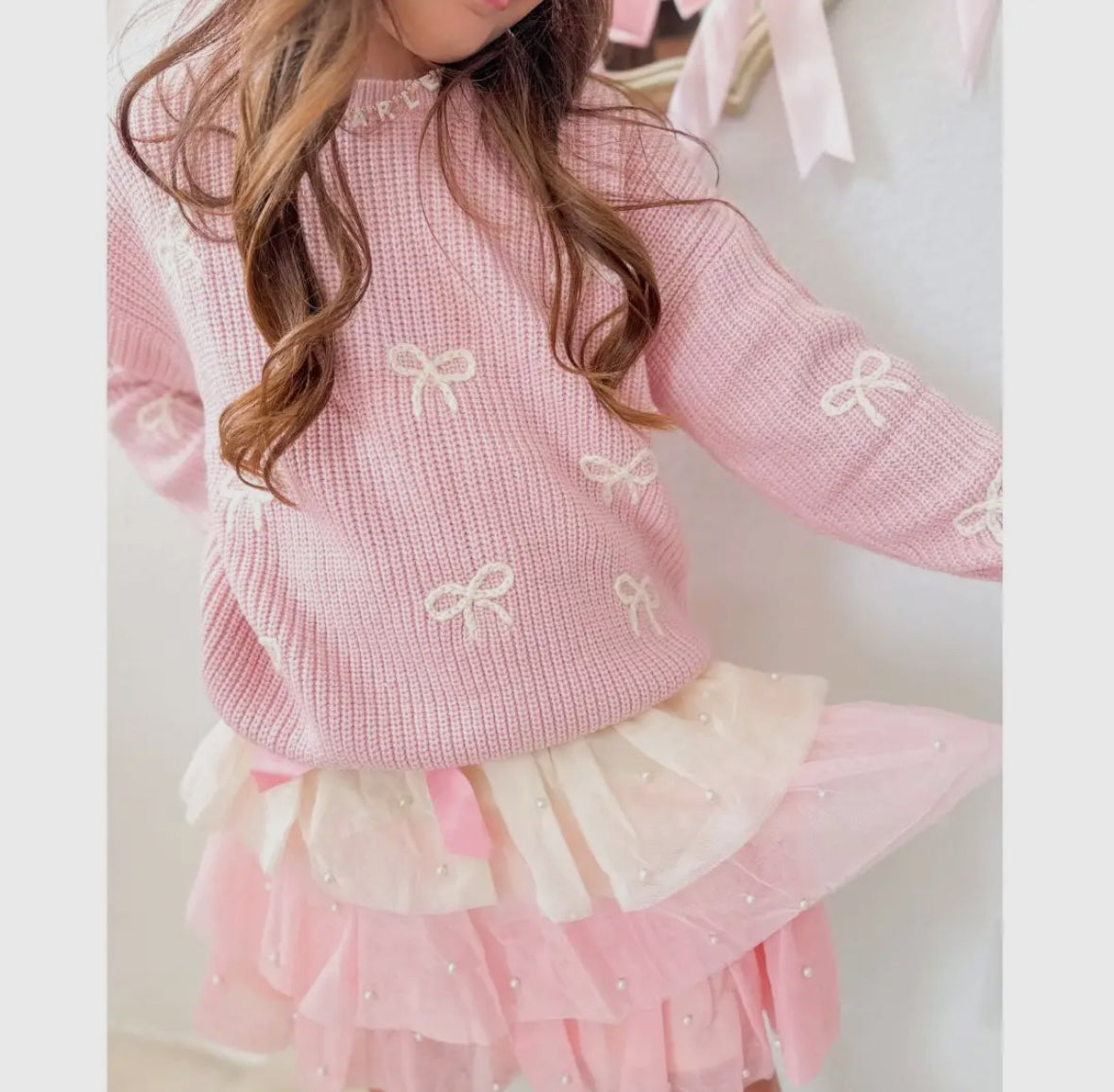 The All Over Bows Knit Sweater is a fun and festive sweater inspired by the bow trend!