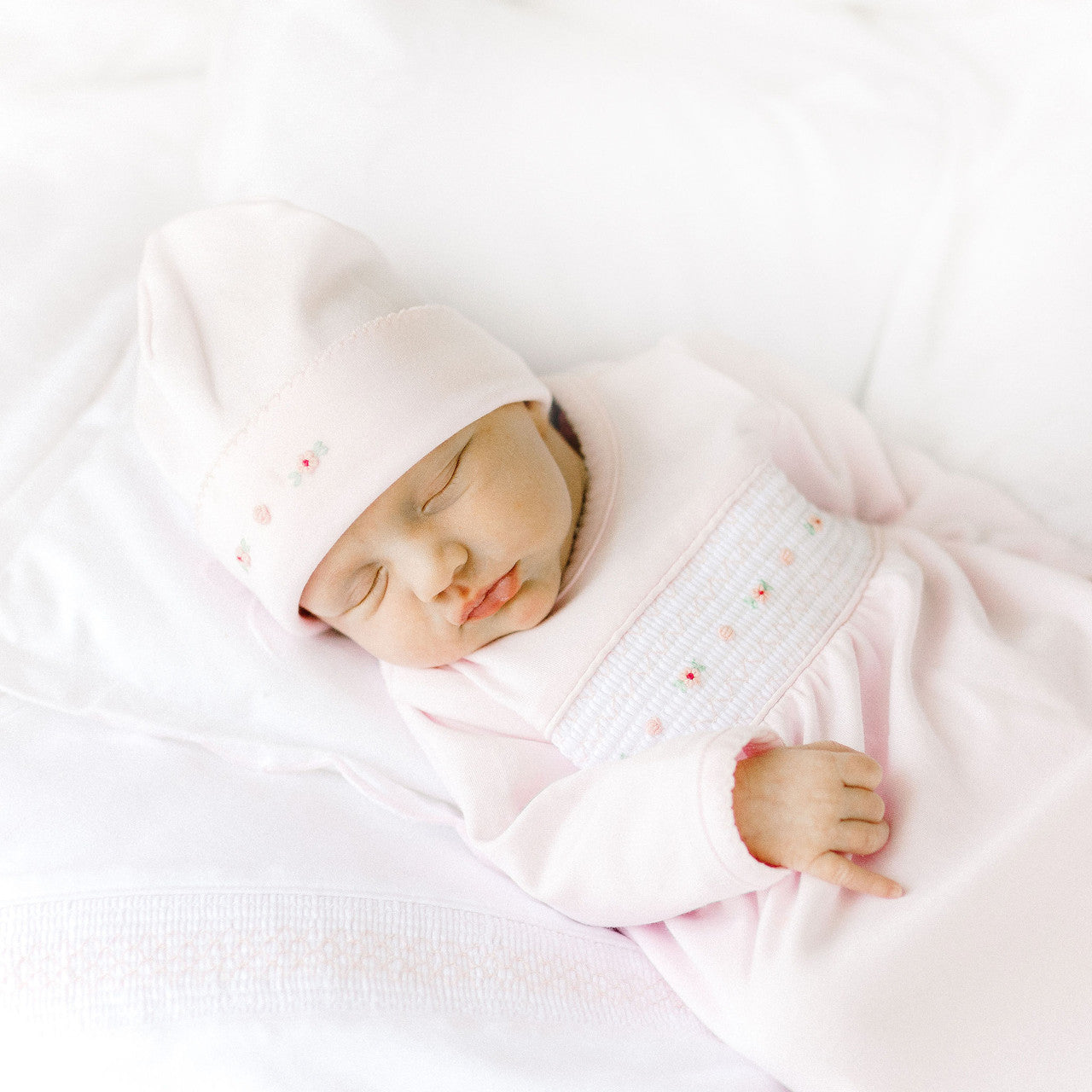 Baby Girl Smocked Flower Gown And Hat, Pink