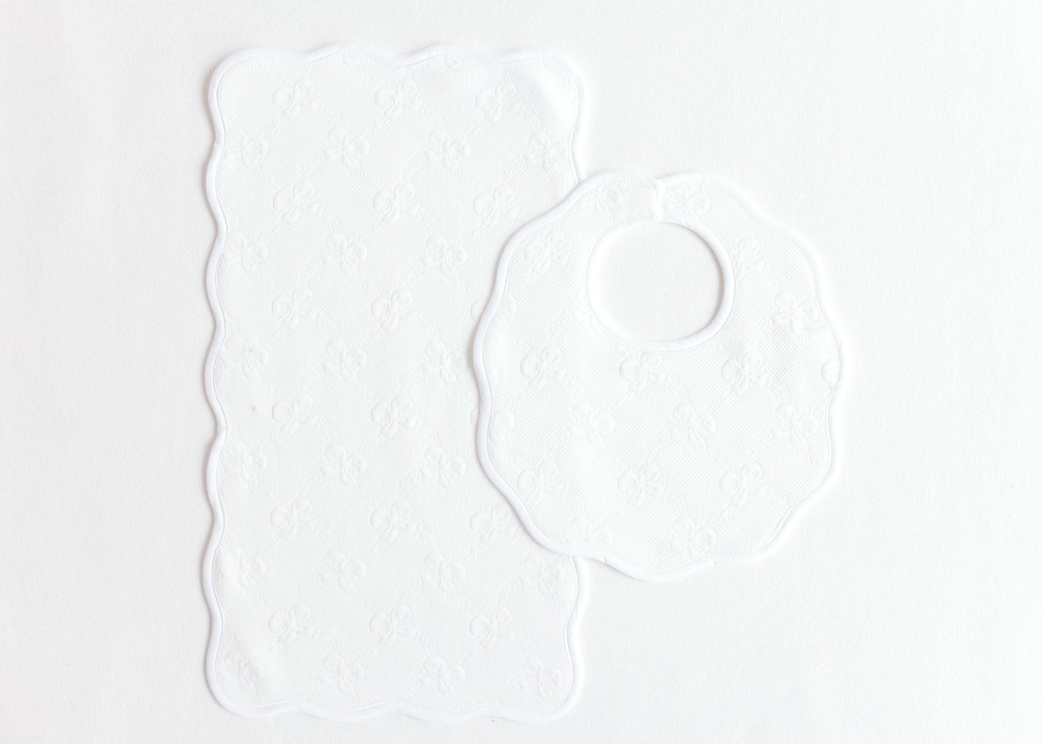 White jacquard cotton fabric with white bows and thin terryclothGift packaging