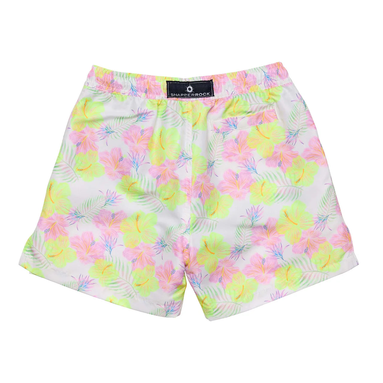 Tropical print. Laid-back fit. Instant summer upgrade. The Aloha Vacay Recycled Swim Shorts deliver on all fronts with a bold hibiscus print, elastic waist and drawcord for a secure fit, and built-in mesh lining for comfort.