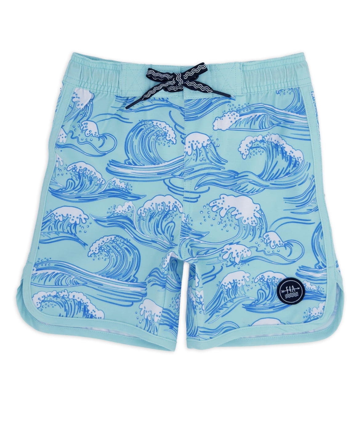 Boy's scallop edge boardshort with contrast taping detail, elastic waistband and drawcord for easy fit, made with quality fabric that offers maximum comfort