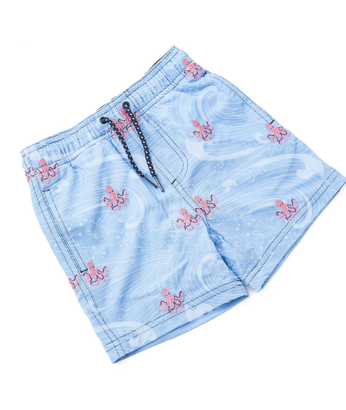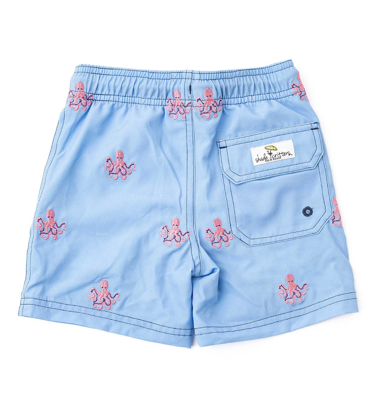 Swim Trunks, Embroidered Octopus, Water Appearing