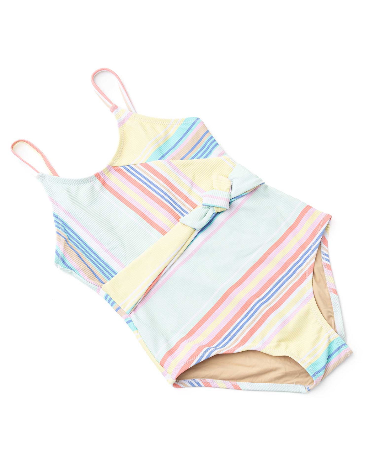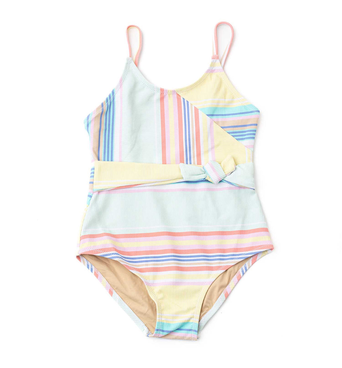 1-piece Bathing Suit, Ribbed Faux Wrap - Surfer Stripe