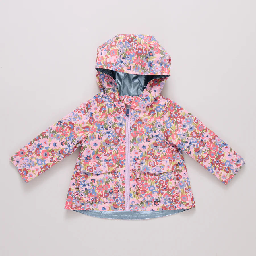 A spring layering essential designed for drizzly days and playful adventures! This reversible raincoat features our Burgundy Sketched Floral on one side with a coordinating solid on the other, offering two looks in one easy piece. Thoughtfully designed with a roomy hood, front pockets, and a relaxed fit that layers comfortably over dresses and knits, it’s both practical and polished. Lightweight yet protective, this raincoat brings signature Pink Chicken charm to every rainy-day outing.