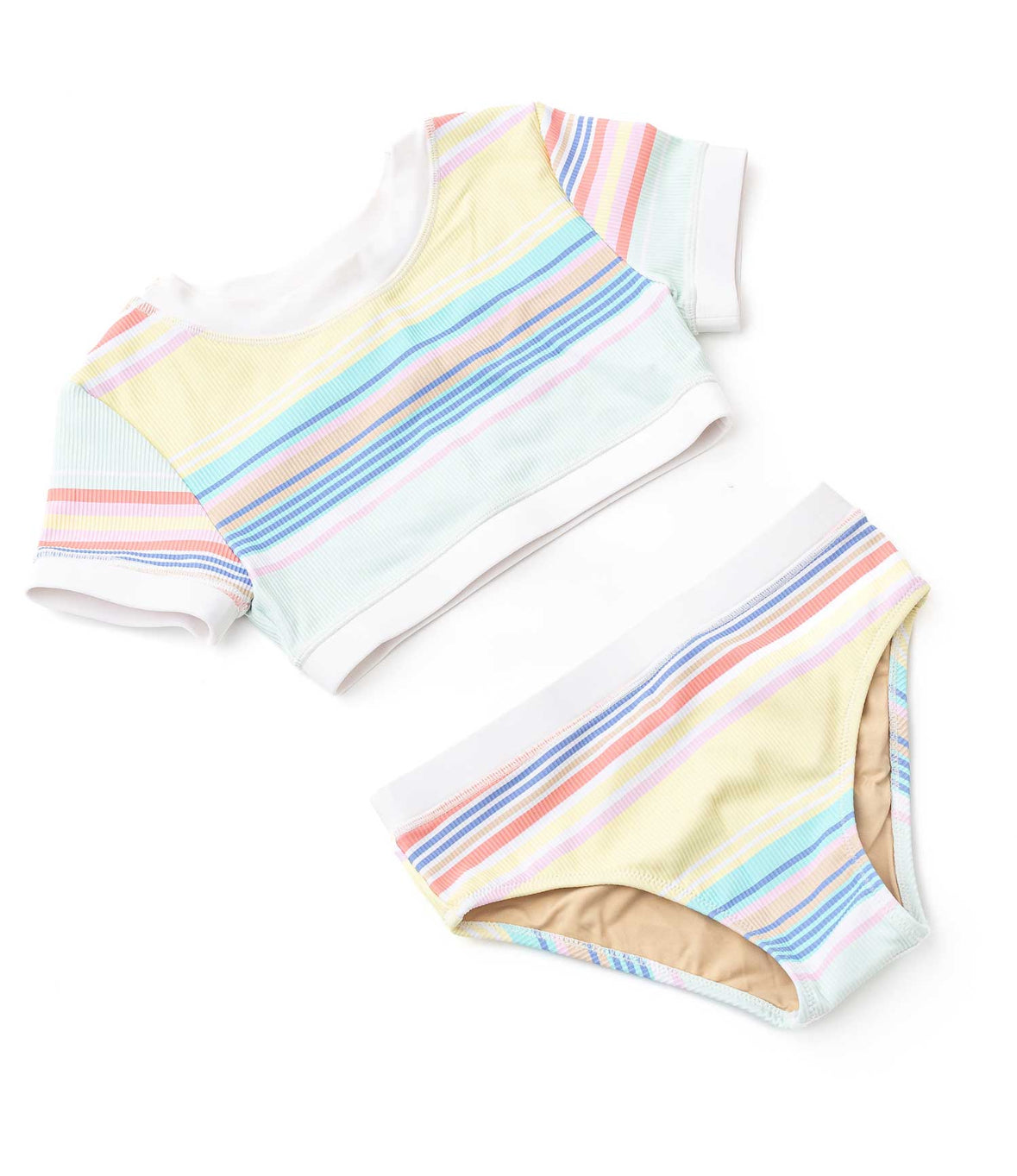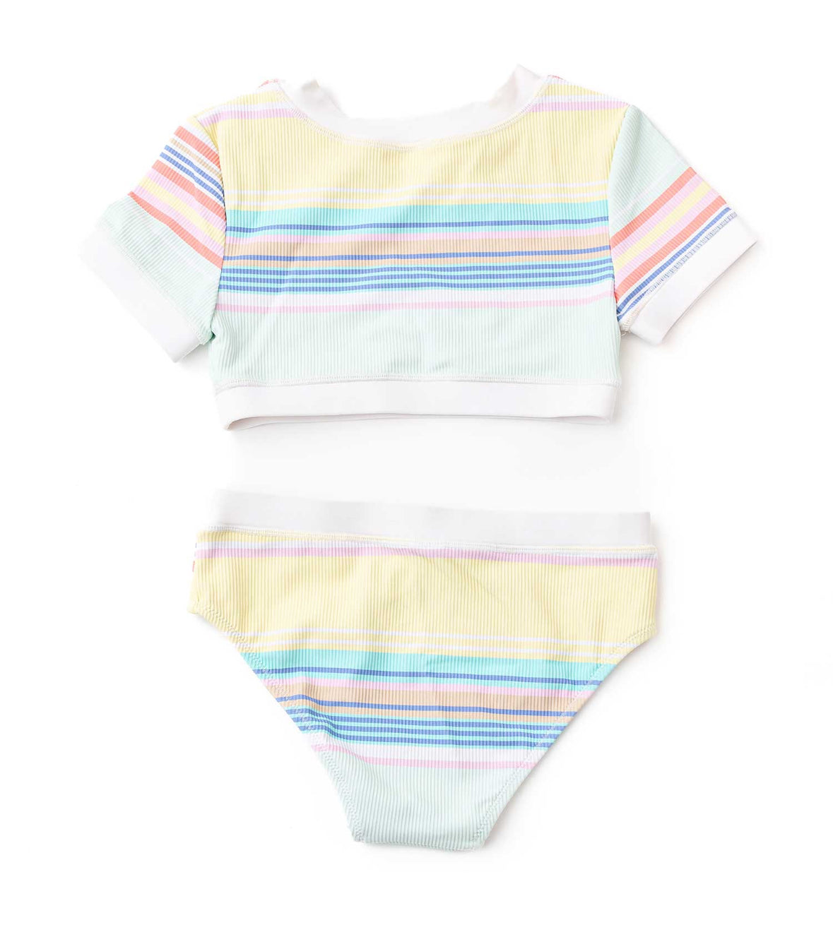 Ribbed Cropped SS Rash Guard Set - Surfer Stripe