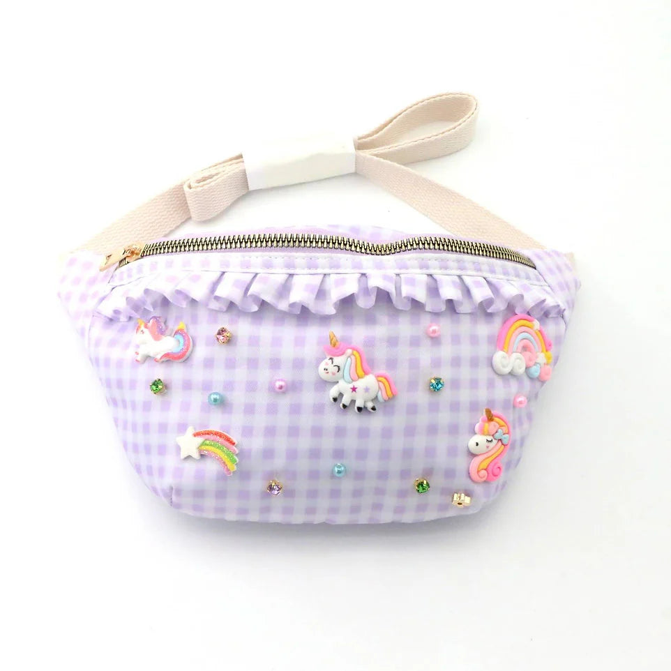 Purple and white gingham with ruffle trim, our Magical Poppy Pack is whimsical, colorful, and cute! Perfect for those who adore a touch of magic, it features glittery rainbows and unicorns that bring a dose of enchantment to any outfit. At Poppyland, a kingdom of cuteness, we're committed to offering accessories that spark joy and imagination. This colorful accessory is a must-have for anyone who loves fun and vibrant designs. Add a splash of whimsy to your collection with this adorable pack!