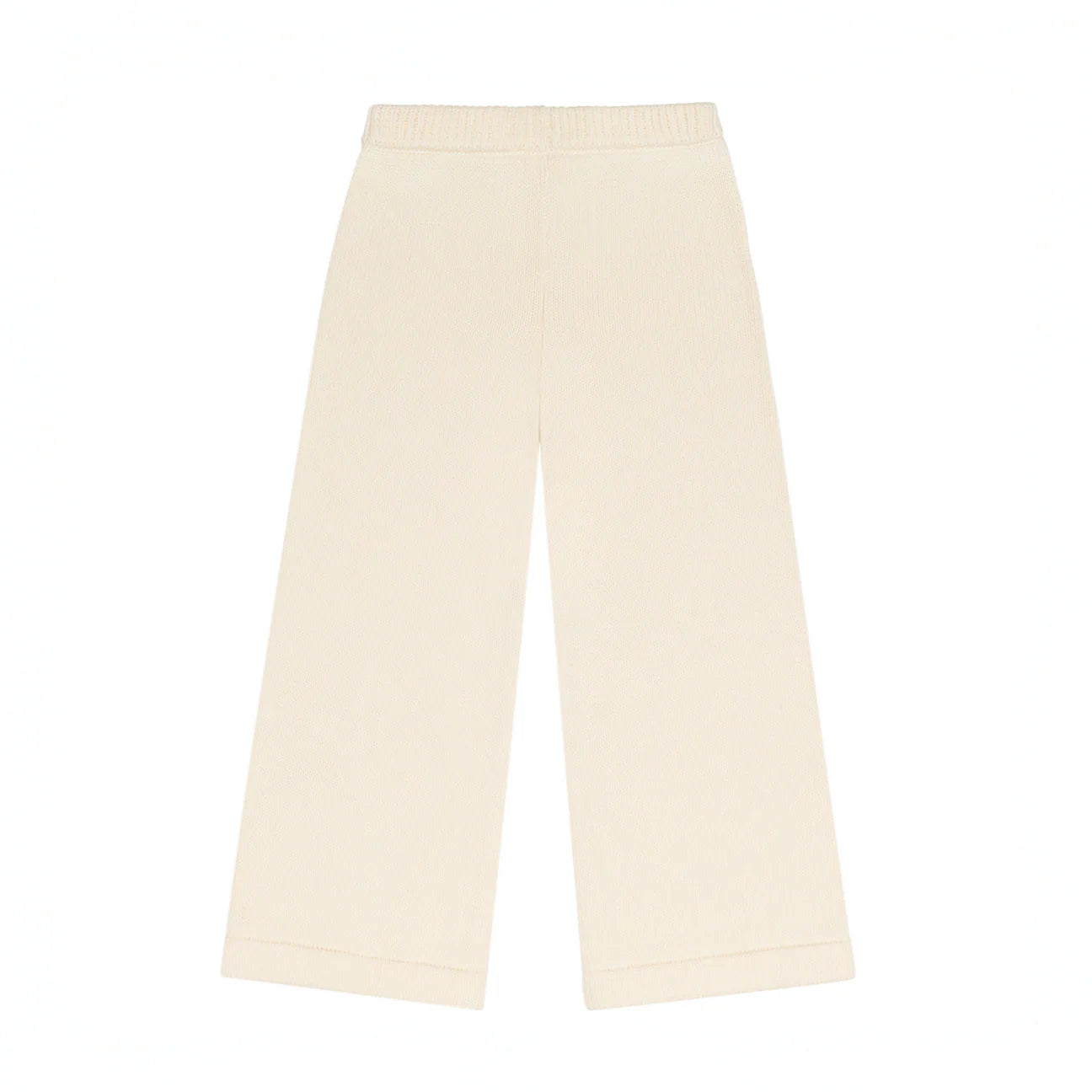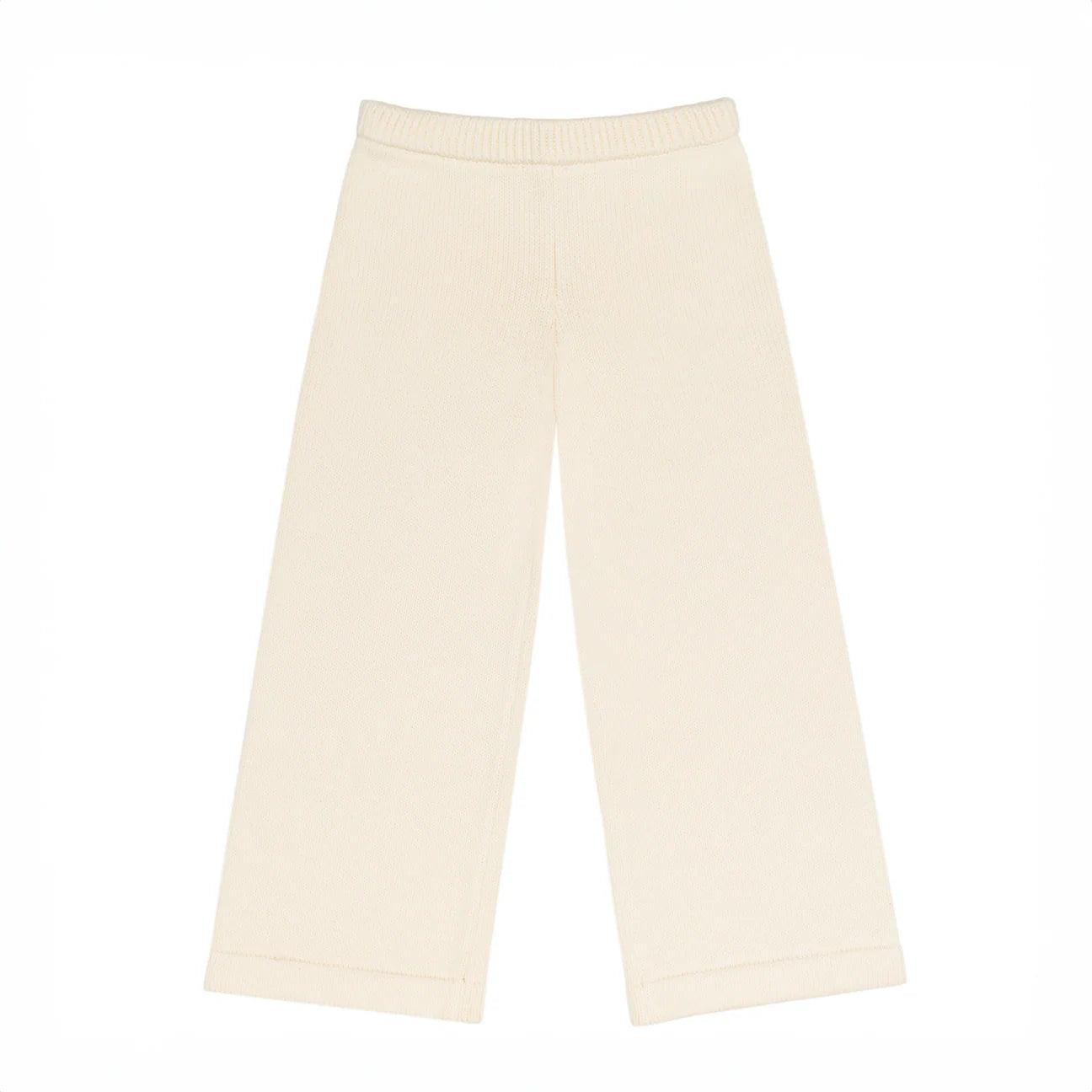 these cozy & ultra soft luxury knit pants are the perfect piece to throw over your minnow suit for an evening bonfire or après swim. made from natural cotton fibers known for their breathability and absorbency. this special piece stands up to wear and tear without sacrificing comfort. featuring unique rib detailing throughout with an elastic drawstring waistband and a slight flared leg. pair with the coordinating knit sweater or knit cardigan for a sweet lounge set your littles will never take off!