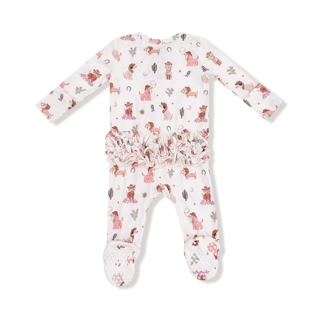 2 Way Zipper Ruffle Back Footie, Cowgirl Dogs
