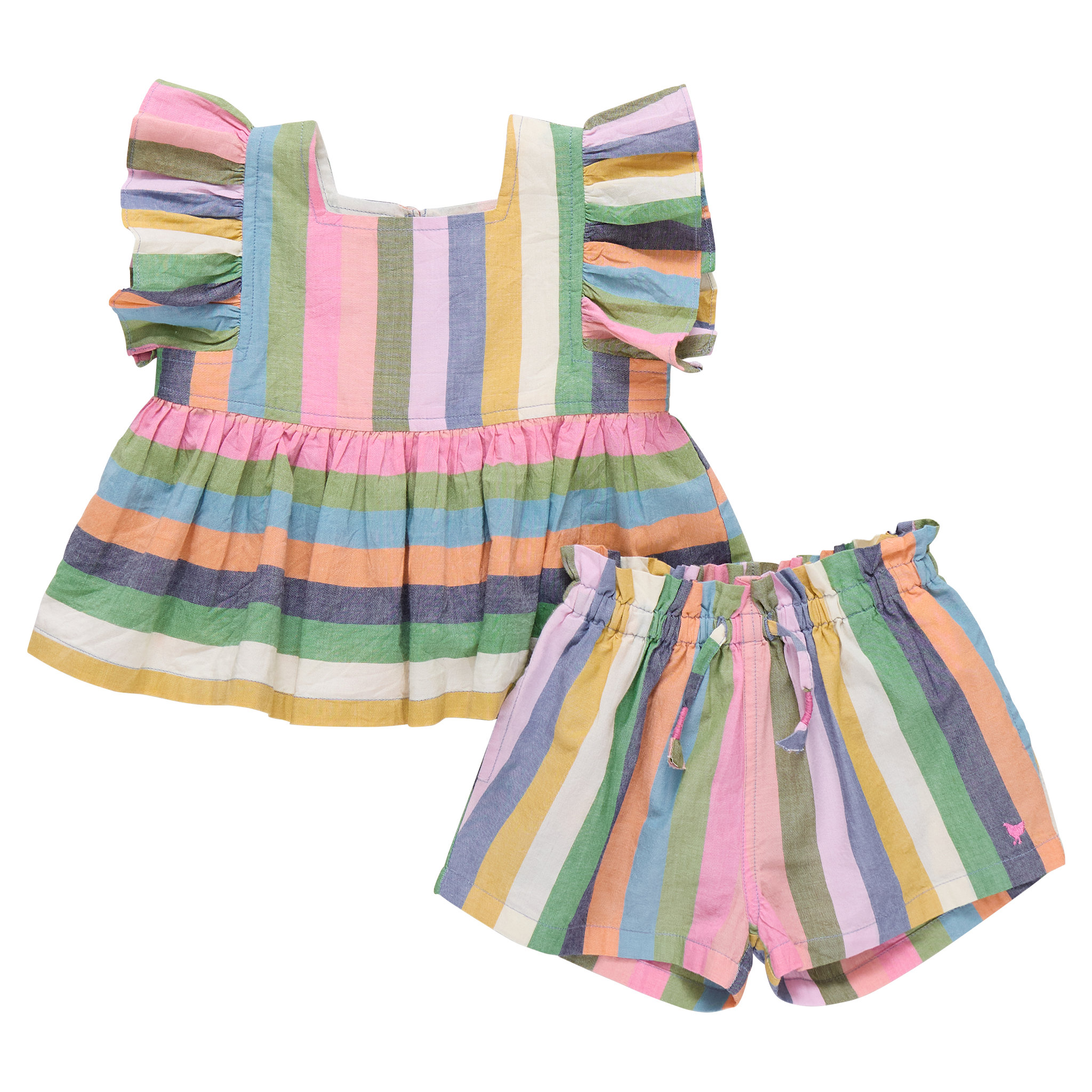A sunshine-ready favorite. The Baby Girls Elsie 2-Piece Set in Parade Stripe features cheerful yarn-dyed stripes and the signature flutter sleeve silhouette you love. Designed with comfort and charm in mind, this set makes dressing effortless while still feeling polished. A sweet warm-weather staple made for everyday twirls and special outings alike.