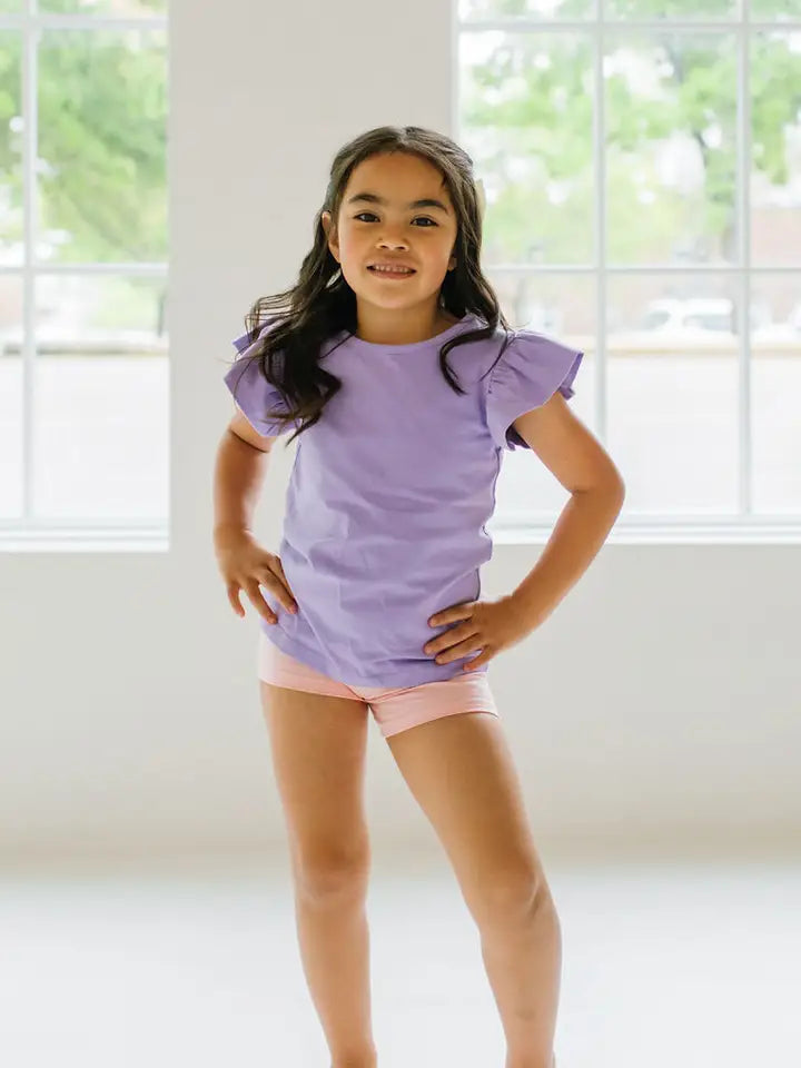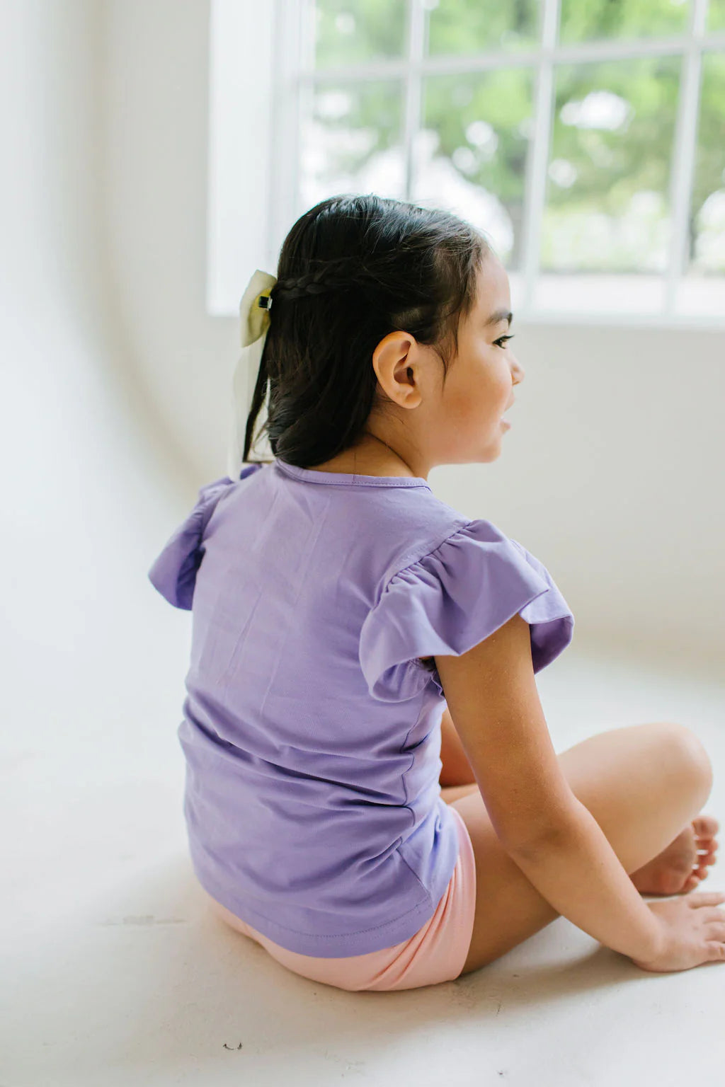Our Flutter Tee brings a fresh twist to the classic silhouette with its delicate flutter sleeves and comfortable wide neck opening. Crafted from the softest blend of 95% premium jersey cotton and 5% spandex, this tee offers unbeatable comfort that your little one will love to wear again and again.