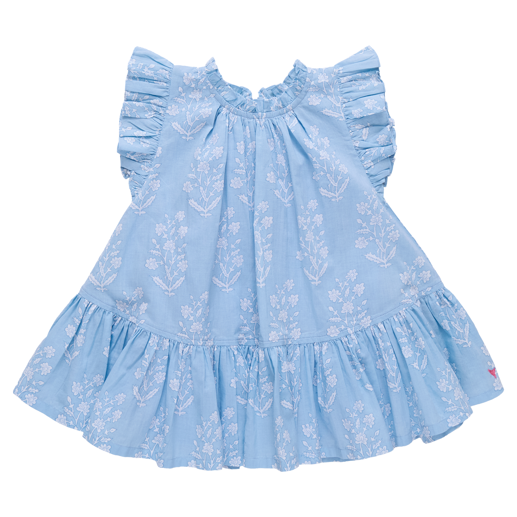 Soft, airy, and endlessly wearable. The Harper Dress in Blue Dewdrop Blockprint features a relaxed silhouette with gentle ruffle detailing that adds just the right amount of sweetness. Crafted in lightweight cotton cambric, it feels breathable and easy for warmer days ahead. Effortlessly polished yet comfortable enough for play, this is the kind of piece she’ll reach for again and again.