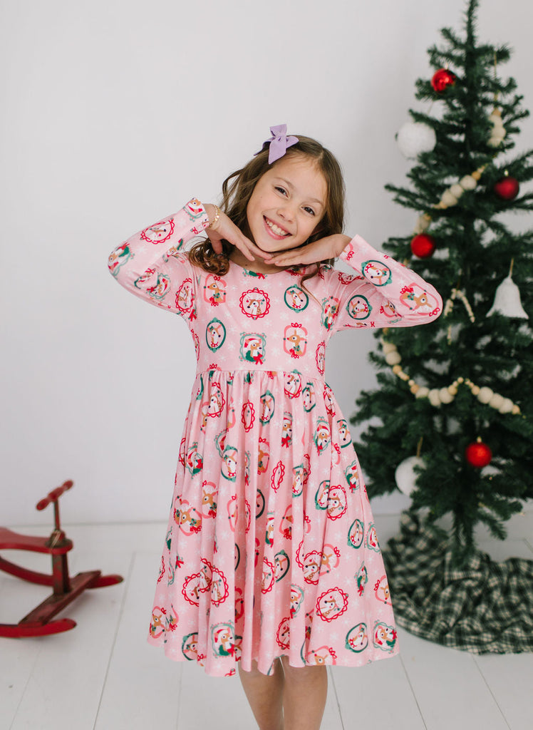 The Gwendolyn Dress combines comfort and classic style with long sleeves, a flattering scoop back, and a full circle twirl skirt that's perfect for playtime and special occasions alike. Hidden pockets in the seams add practical charm, while our signature super soft fabric ensures all-day comfort.