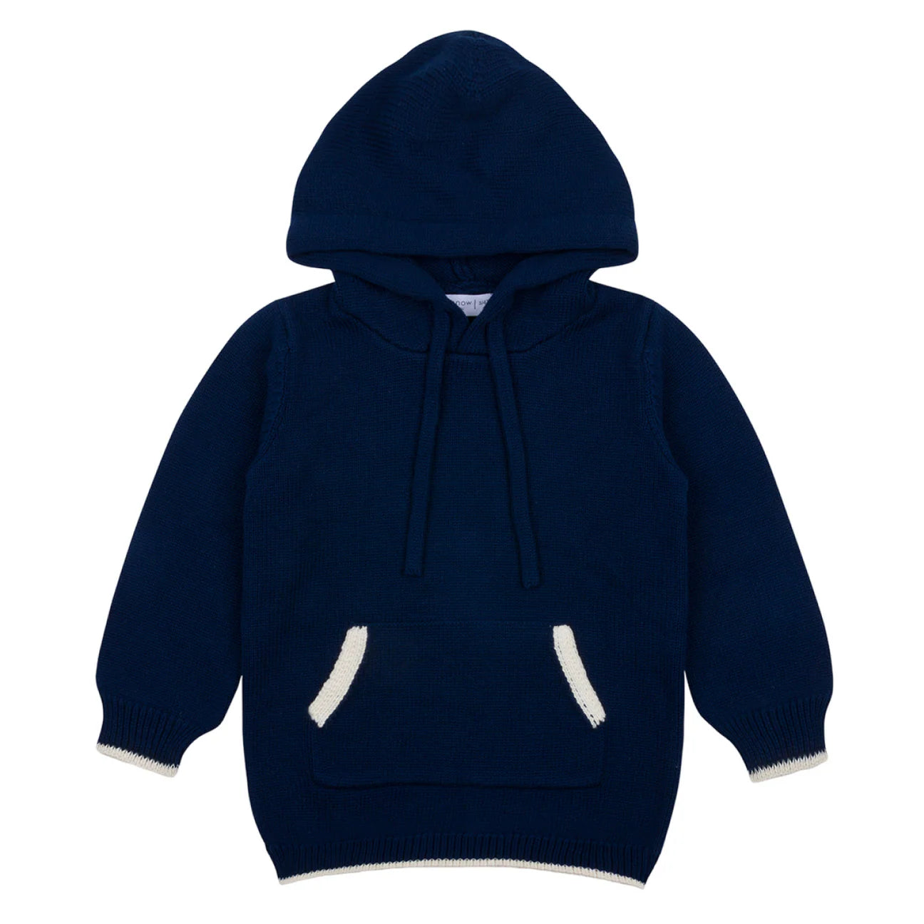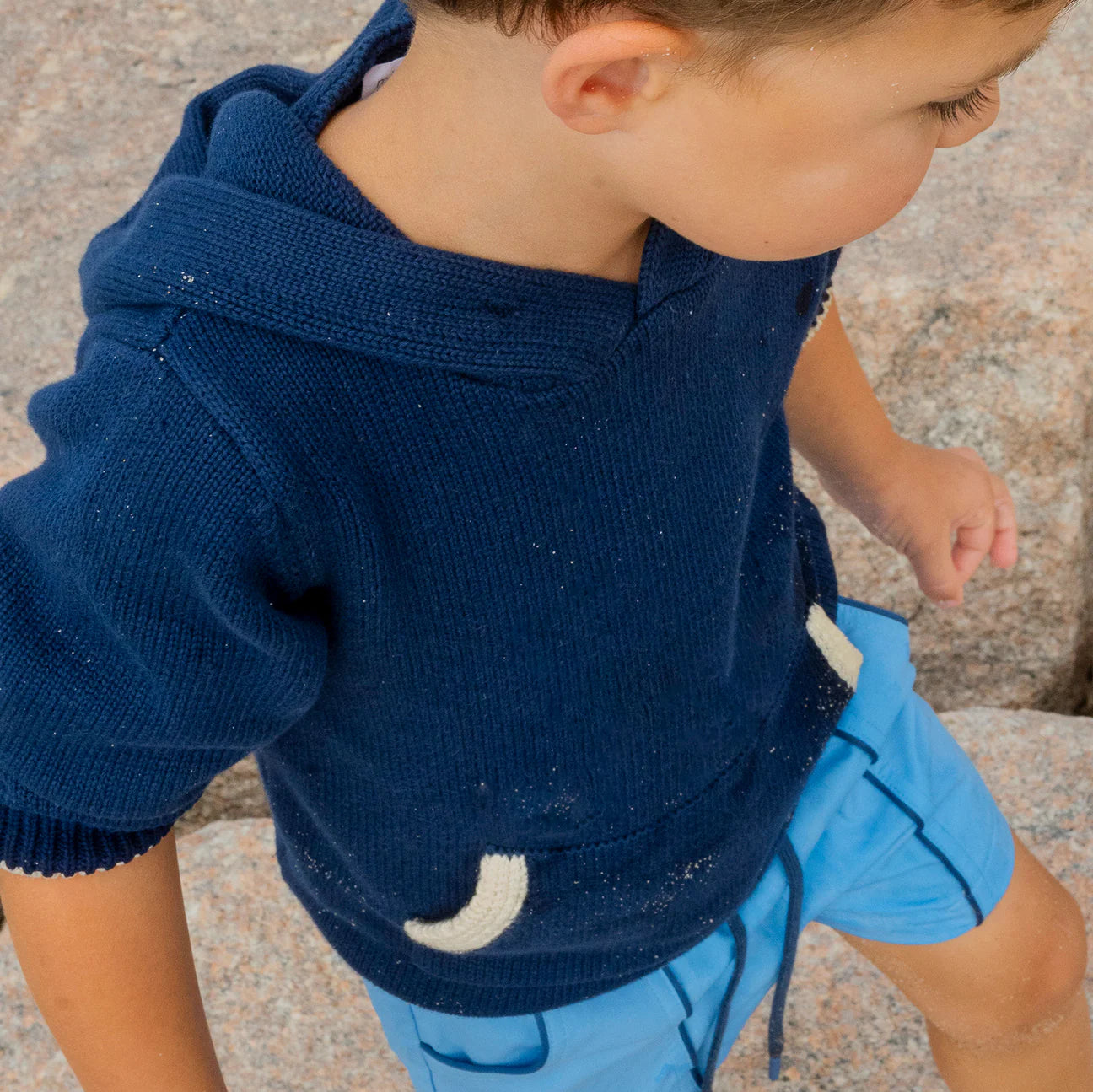 this ultra-soft luxury knit sweater is the perfect piece to throw over your minnow suit for an evening bonfire or aprés swim. made from natural cotton known for its breathability and absorbency, this special piece is durable without sacrificing comfort. it features unique rib detailing throughout with a cozy hood. pair with the coordinating knit pants for a sweet lounge set your littles will never take off!