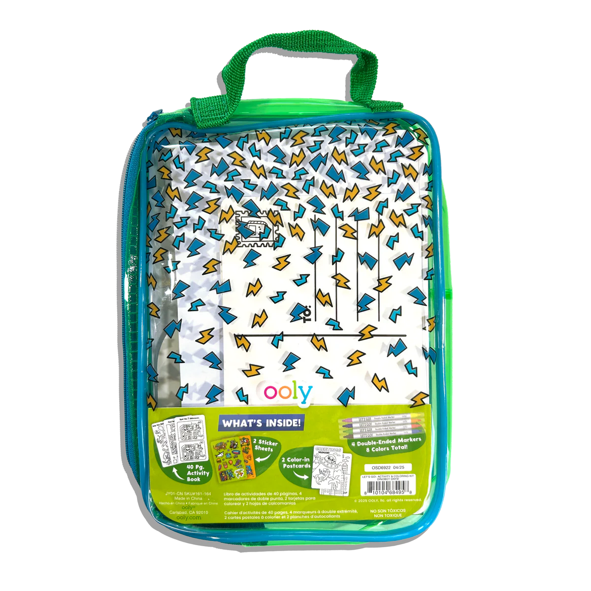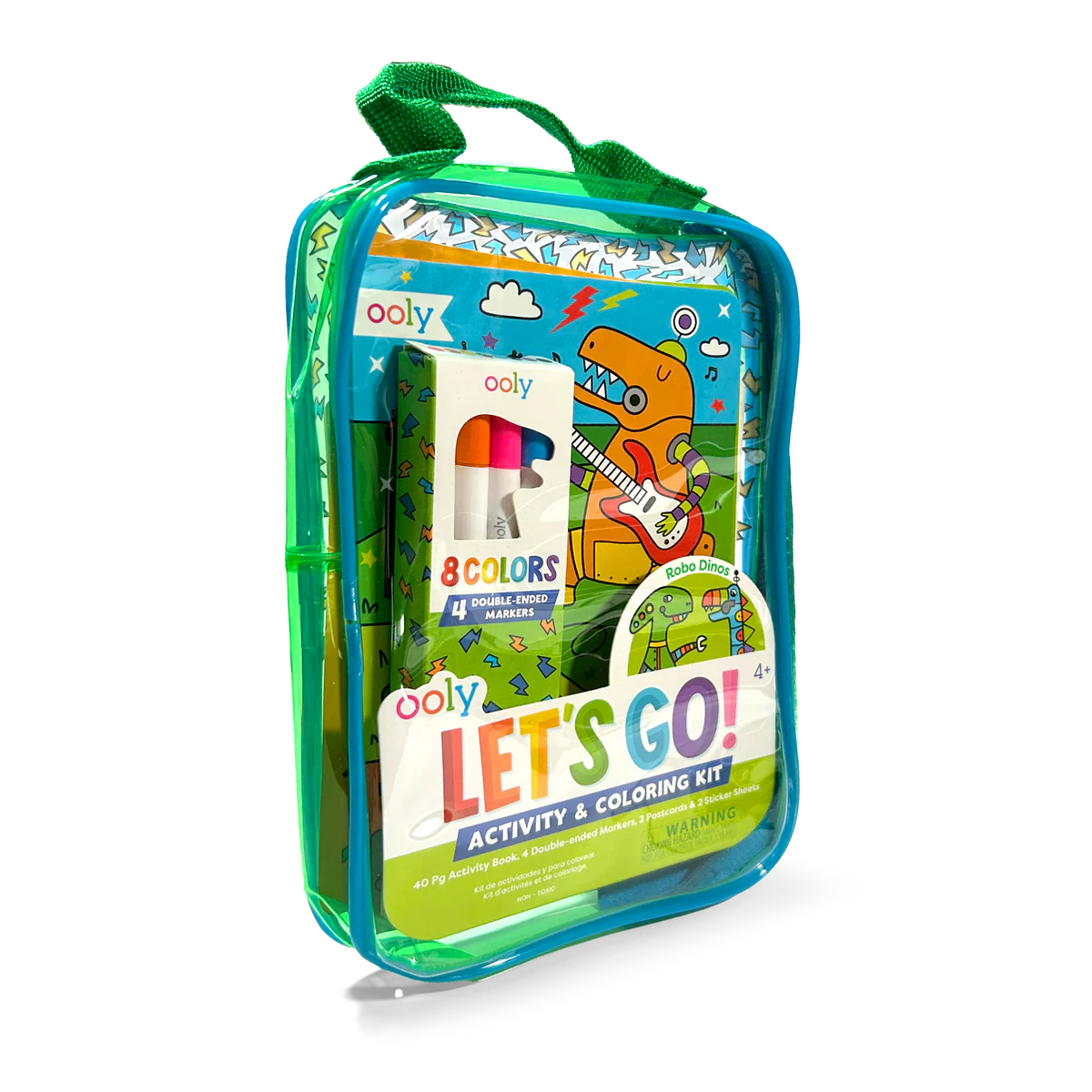 Keep kids entertained wherever they go with the Robo Dinos Let’s Go! Activity & Coloring Kit! This exciting kids' activity kit features robotic dinosaurs in a fun-filled 40-page activity book with color-by-number, puzzles, word searches, and games. It also includes two sticker sheets, two postcards, and four double-ended markers with eight colors, making it a complete on-the-go entertainment solution.