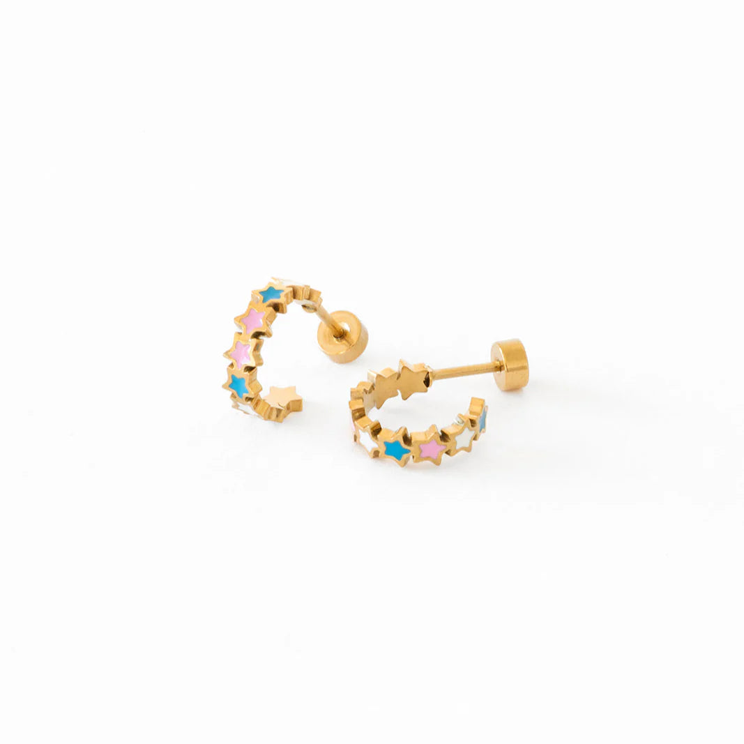Treat yourself with our Star Flat-back Hoop! Multicolor enamel stars - pink, blue & white!